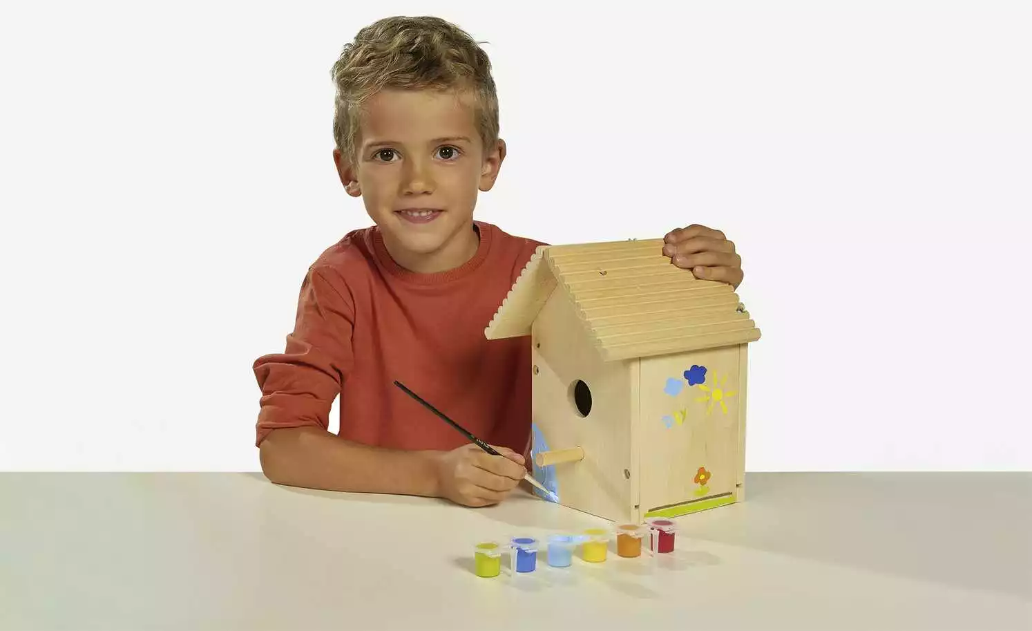 - Lieferumfang / mitgeliefertes Zubehör: inklusive Pinsel und Farben, Vogelhaus zum Zusammenbauen und Bemalen